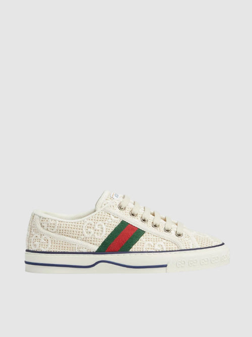 구찌 테니스 1977 스니커즈 아이보리 화이트 GG 자수 크로쉐 코튼