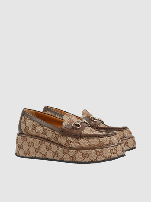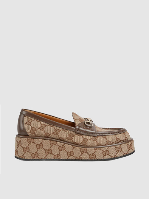 구찌 홀스빗 웨지 힐 로퍼 베이지 에보니