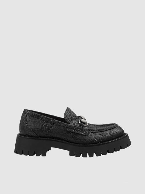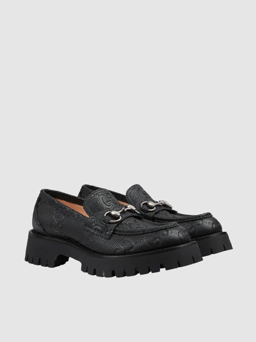 구찌 GG 러그 로퍼 스퀘어 홀스빗 블랙 레더