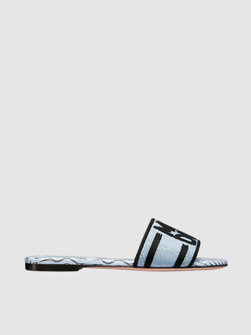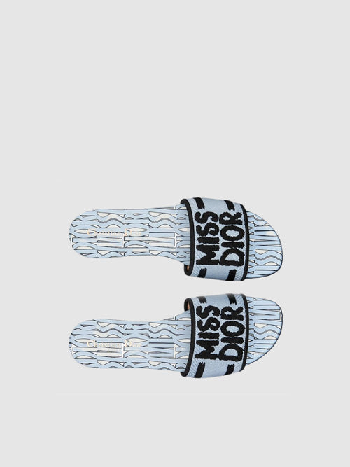 디올 디웨이 슬라이드 자수 코튼 앤 페일 블루 미스디올 올 오버 모티프