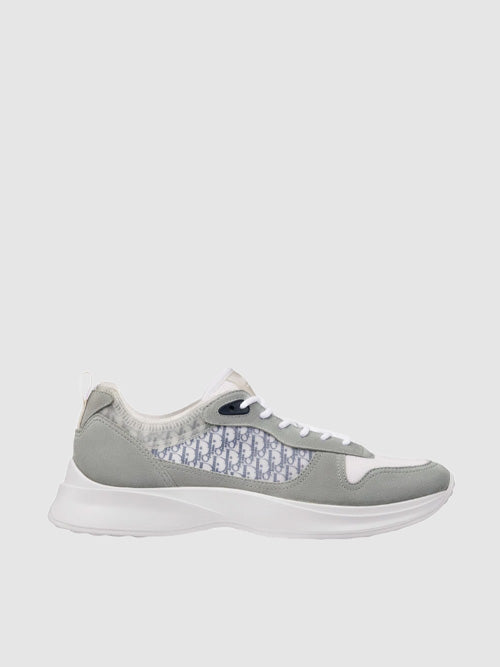 디올 B25 러너 스니커즈 그레이 스웨이드 화이트 테크니컬 메쉬 블루 화이트 디올 오블리크 캔버스