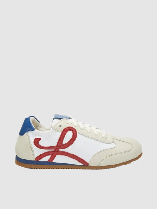 로에베 발레 러너 인 나일론 앤 카프스킨 소프트 화이트 체리 로얄 블루