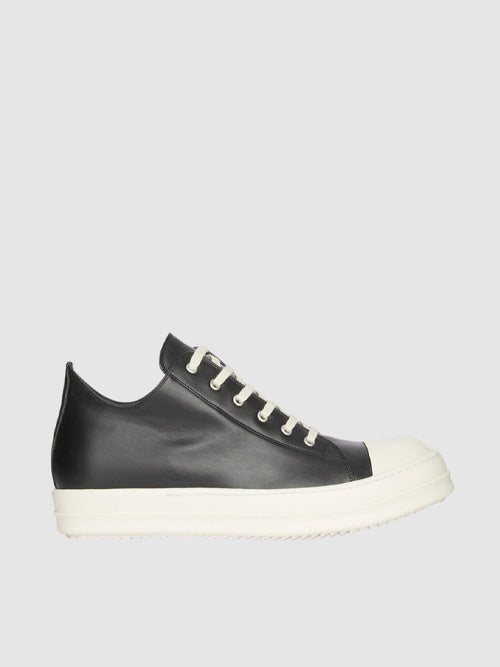 릭 오웬스 풀 그레인 카프 레더 스트로브 로우 스니커즈 블랙 밀크 화이트