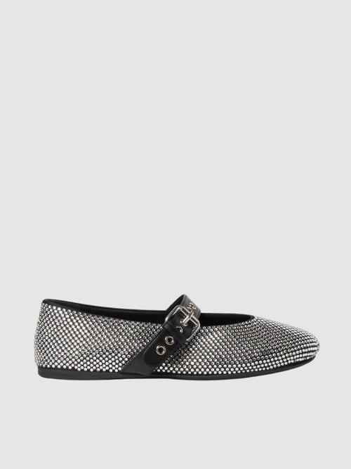 미우 미우 사틴 발레리나 크리스탈 블랙