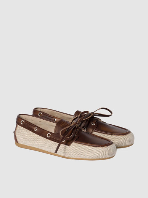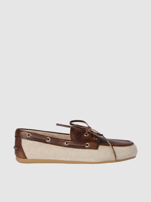 미우 미우 캔버스 블리치드 레더 보트 슈즈 베이지 브라운