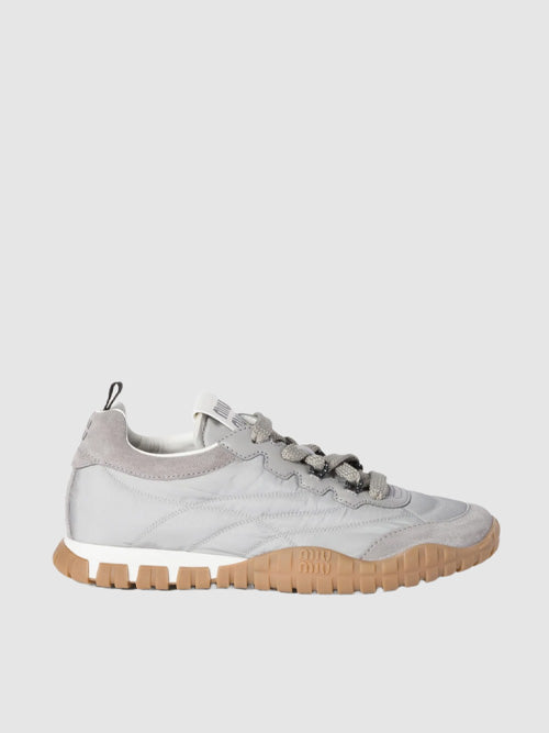 미우 미우 타이어 테크니컬 패브릭 앤 스웨이드 스니커즈 클라우디 그레이