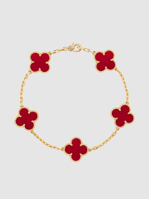 반 클리프 & 아펠 빈티지 알함브라 브레이슬릿 5 모티프 옐로우 골드 커넬리언