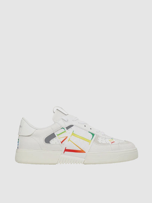 발렌티노 송아지 가죽 & 패브릭 밴드 VL7N 로우탑 스니커즈 화이트 멀티컬러