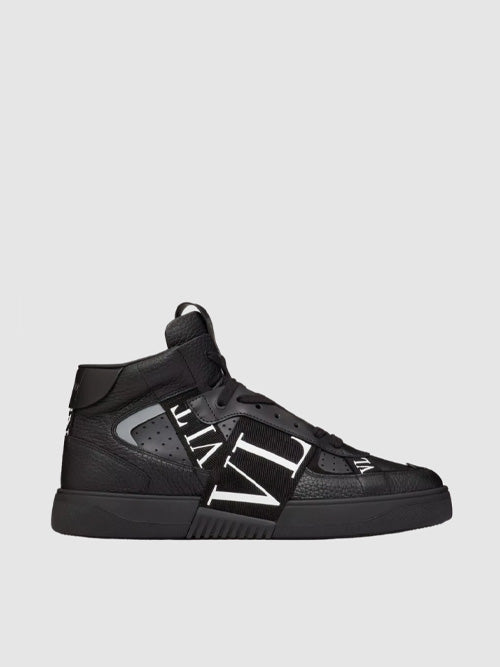 발렌티노 송아지 가죽 & 패브릭 밴드 VL7N 미드탑 스니커즈 블랙