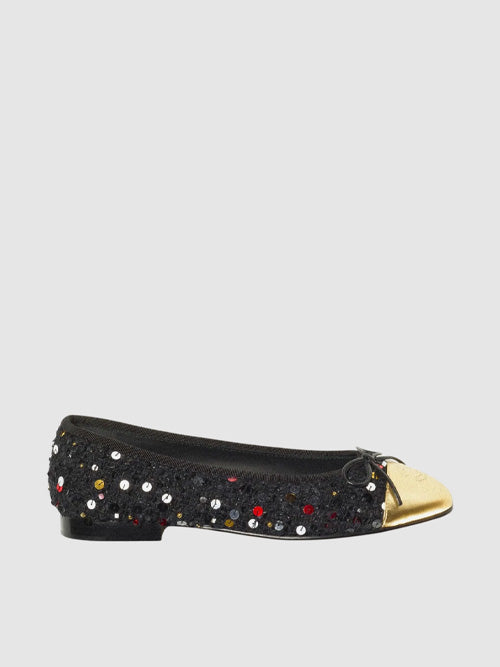샤넬 발레리나 플랫 글리터 트위드 라미네이트 램스킨 & 블랙 골드 멀티컬러