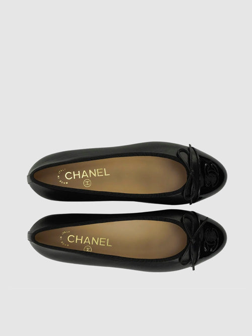 샤넬 발레리나 플랫 램스킨 페이턴트 카프스킨 & 블랙