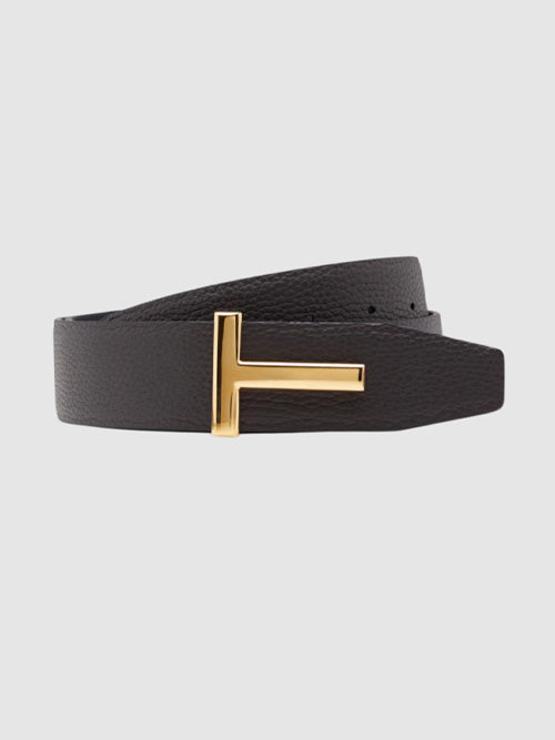 톰포트 소프트 그레인 레더 T 아이콘 벨트 브라운 블랙 38MM
