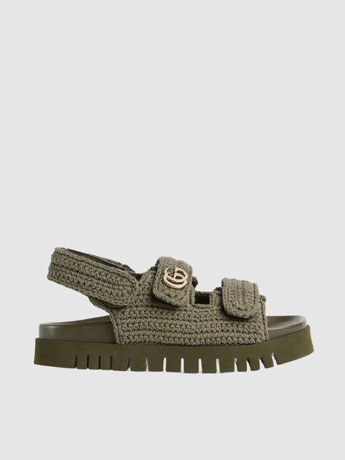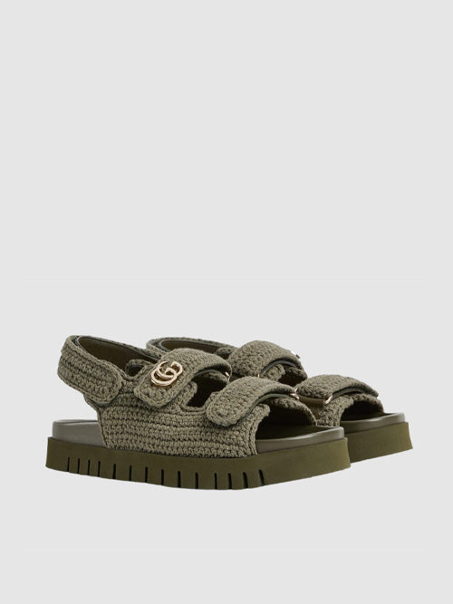 구찌 샌들 더블 G 다크 그린 코튼 크로쉐