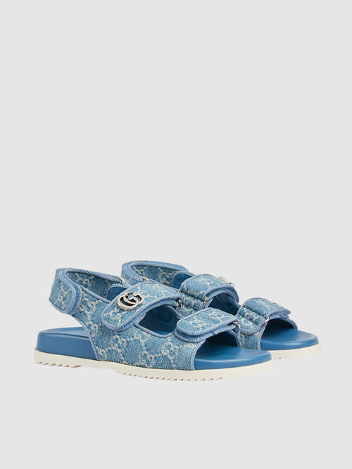 구찌 샌들 더블 G 라이트 블루 아이보리 데님