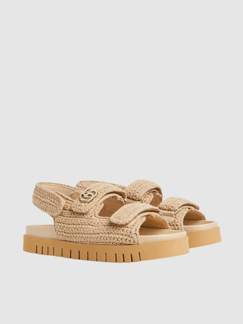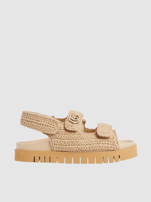 구찌 샌들 더블 G 베이지 코튼 크로쉐