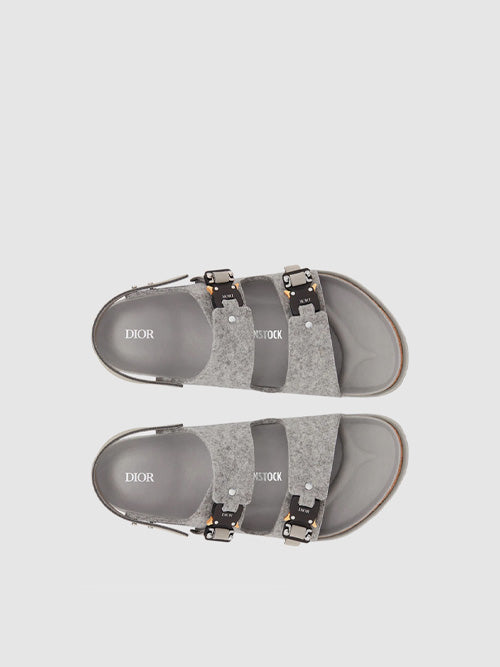 디올 x 버켄스탁 밀라노 샌들 펠트 울 누벅 카프스킨 그레이