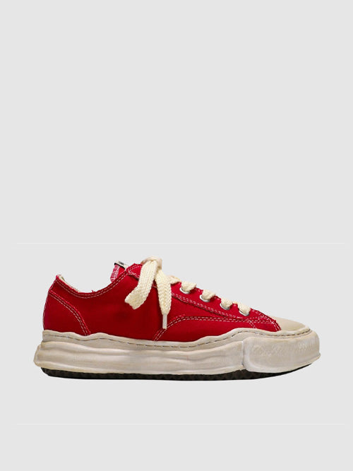 메종 미하라 야스히로 피터슨 OG 솔 오버다이드 캔버스 로우탑 스니커즈 레드