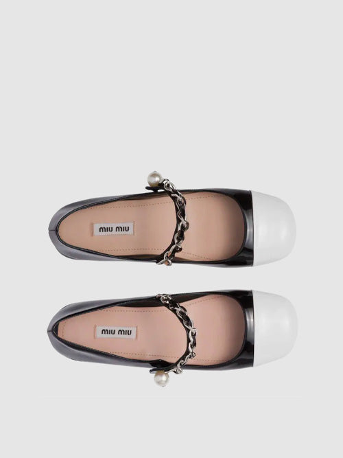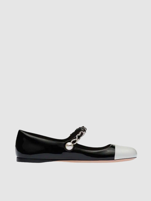 미우 미우 페이턴트 가죽 발레리나 블랙 화이트