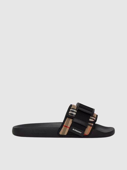 버버리 버클 스트랩 빈티지 체크 코튼 슬라이드 아카이브 베이지