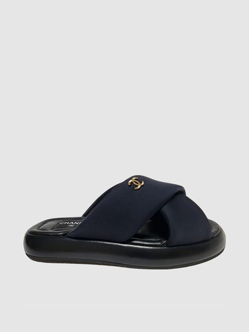 샤넬 뮬 패브릭 & 골드 메탈 블랙