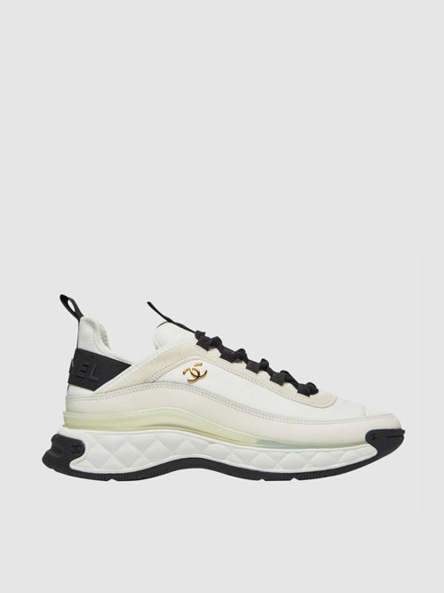 샤넬 믹스드 파이버 스니커즈 벨벳 카프스킨 & 골드 메탈 아이보리