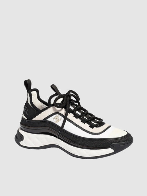 샤넬 믹스드 파이버 스니커즈 패브릭 스웨이드 카프스킨 & 화이트 블랙